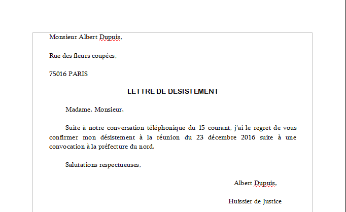 « LETTRE DE DÉSISTEMENT» : ne rien changer