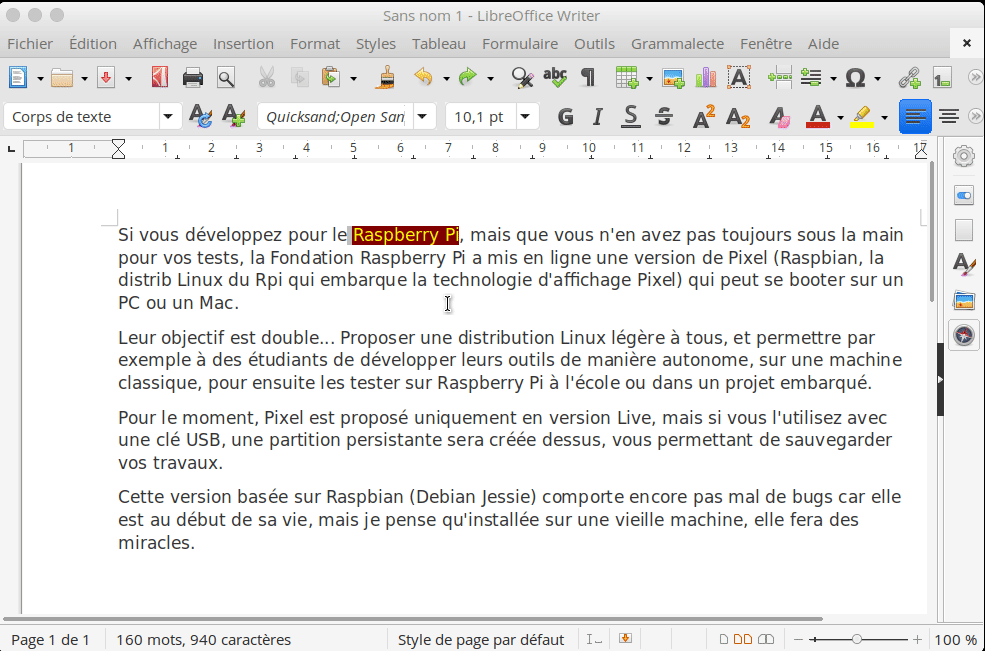 Cette fonctionnalité permet de dupliquer une mise en forme, par exemple une combinaison de formatages (gras, italique et couleur de police) déjà appliquée à une portion du texte.