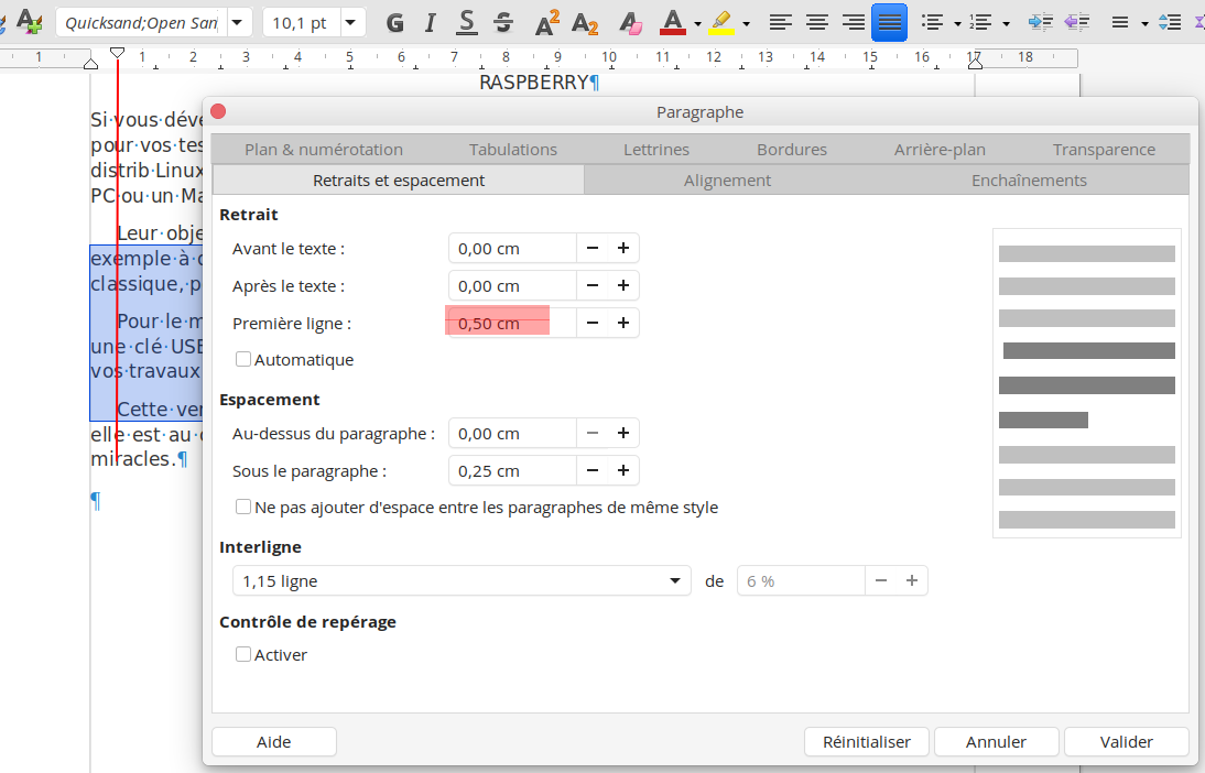 Pour l'appliquer, dans le menu Format / Paragraphe :