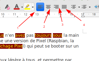 Ces alignements sont disponibles sur la barre d'outils :