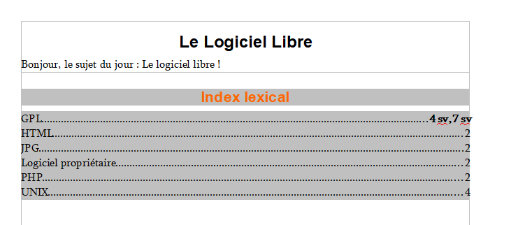 - Insérez l'index lexical au début du document