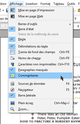 Pour masquer ou afficher les commentaires Affichage / Commentaires :