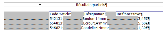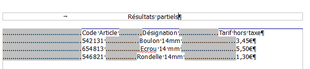 Notez que l'alignement décimal ne convient au texte Tarif hors taxe alors que les prix sont tous alignés sur la virgule.
