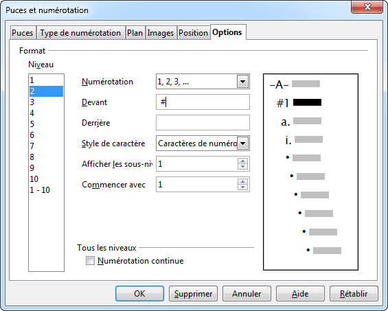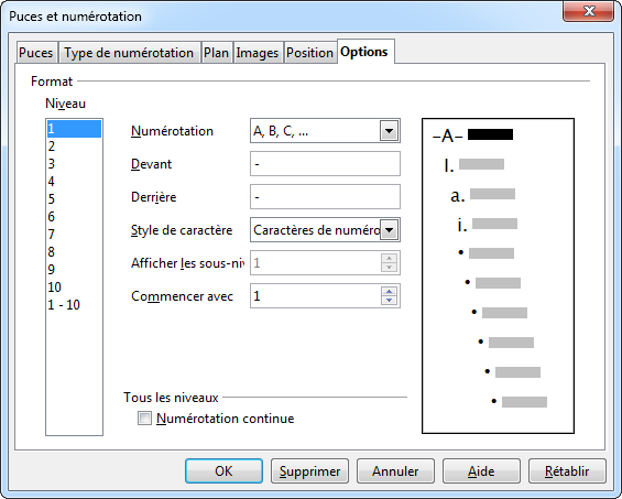 Toujours dans la liste d'arbitres, personnalisez chaque niveau selon les réglages décrits dans les boîtes de dialogue suivantes, niveau par niveau :