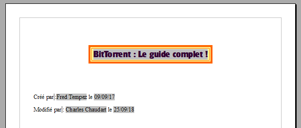 Renseignez le champ Titre, en page de garde, remplacez le texte du titre par son champ :