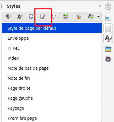 Les styles de page se modifient à l'aide d'un clic droit puis Modifier.