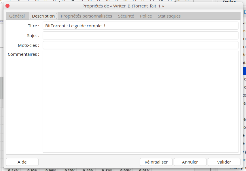 Cliquez sur Fichier / Propriétés dans l'onglet Description, complétez :